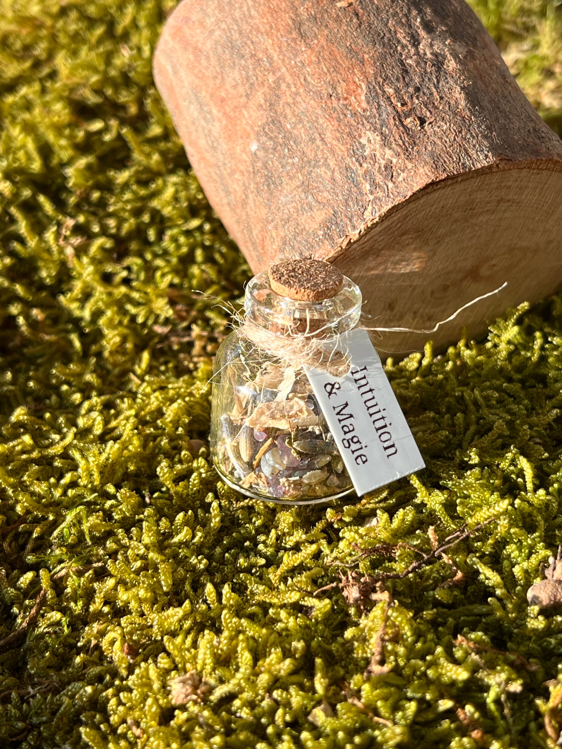Chaque fiole est un talisman unique, composée avec soin de pierres naturelles et d’herbes sélectionnées pour leurs énergies.